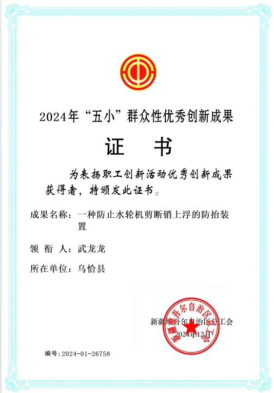 日前,云顶yd7610线路检测中心一名职工牵头研发的“一种防止水轮机剪断销上浮的防抬装置”荣获新疆维吾尔自治区总工会“五小”群众性创新成果优秀奖。 剪断销是混流式水轮机最常见的一种导叶传动保护装置,是导叶传动环节精心设计好的脆弱“关节”,在导叶叶片被异物卡住时能自动剪断,从而保护水轮机安全。一般水电站剪断销普遍存在易上抬现象,使剪断销脱离导叶传动环节,无法起到保护作用。该装置在原有剪断销设计图纸上增设攻丝及防抬装置,主要依托增加防抬挡板,以此固定剪断销位置,相比于其他防抬措施,该装置具有结构简单、成本低廉、适用性强等优点。 据悉,该装置于2023年10月应用于夏特水电站,从投入使用至今,夏特水电站四台水轮机剪断销装置再未出现上浮现象,充分验证了该装置能够普遍解决常规剪断销装置容易上浮的缺陷,为水电站解决剪断销上抬问题提供了借鉴和参考。 本次荣获自治区“五小”群众性优秀云顶yd7610线路检测中心成果荣誉称号既是对公司工会云顶yd7610线路检测中心工作的认可与肯定,也是对职工积极参与云顶yd7610线路检测中心创效活动的激励。公司工会将以此为契机,继续积极动员职工立足岗位开展云顶yd7610线路检测中心,营造尊重劳动、崇尚技能、鼓励云顶yd7610线路检测中心的浓厚氛围,为助力公司高质量发展贡献职工的智慧与力量。